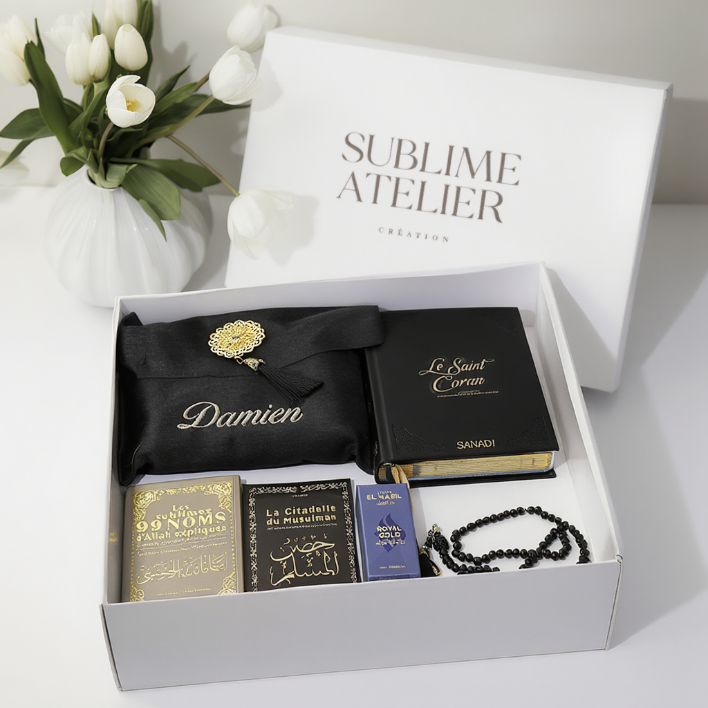 Un coffret raffiné conçu pour l’homme, alliant spiritualité et élégance. Chaque élément est sélectionné pour offrir un moment de pratique religieuse et de méditation de qualité.