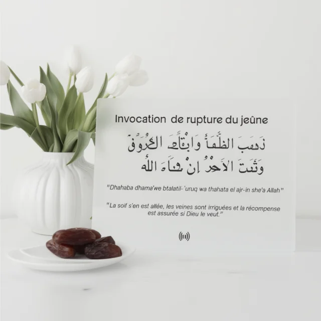 Plexi décoratif pour Ramadan avec puce intégrée. Scannez avec votre téléphone pour écouter une invocation et découvrir sa signification. Cadeau original et moderne pour toute la famille.